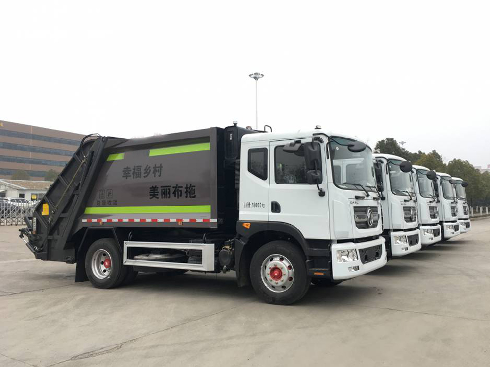 該車主要用于垃圾收集清運(yùn),主要專用裝置為垃圾箱、翻轉(zhuǎn)上料裝置、舉升卸料裝置、填壓機(jī)構(gòu)、液壓系統(tǒng)。卸料方式為后卸式。側(cè),后防護(hù)材料均為Q235,焊接,后防護(hù)截面尺寸(mm):50×120,離地高度400mm。ABS控制器型號/生產(chǎn)企業(yè):CM4YL/廣州瑞立科密汽車電子股份有限公司